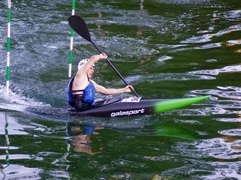 Keywords: kayak white water water sports man young sporty dynamic rowing