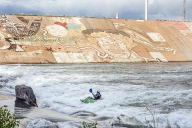 | Keywords: Kayaker Daniel Rottinghaus gets some late-afternoon exercise in the rapids of the Arkansas River, in front of a most unusual levee in Pueblo, Colorado LCCN2015632728.tif 1 photograph digital tiff file color Notes Forms part of Gates Frontiers Fund Colorado Collection within the Carol M Highsmith Archive ; The long and eclectic mural on the levee walls first appeared as whimsical graffiti in the 1970s and is said to be the longest if not the most artistic in the world It all began with the appearance one morning of the drawing of a fish created clandestinely overnight At first the fish and all the art that followed were detested by many as a debasement of public property but the art grew on the community and was soon promoted as something special and worth preserving In 2015 the city began to remove the murals not because of artistic sensibilities but because of repairs to the levee It promised to allow new murals to appear once the repairs were completed ; Purchase; Carol M Highsmith Photography Inc ; 2015; DLC/PP-2015 068 ; Mural artists names not given ; Credit line Gates Frontiers Fund Colorado Collection within the Carol M Highsmith Archive Library of Congress Prints and Photographs Division ; Title date and keywords based on information provided by the photographer 2015 Creator Carol M Highsmith Library of Congress Catalog http //lccn loc gov/2015632728 Image download https //cdn loc gov/master/pnp/highsm/32700/32713a tif Original url http //hdl loc gov/loc pnp/highsm 32713 No known restrictions on publication LOC-image highsm 32713 PD-Highsmith Images uploaded by Fæ Gates Frontiers Fund Colorado Collection within the Carol M Highsmith Archive Arkansas River at Pueblo Colorado Gates Frontiers Fund Colorado Collection within the Carol M Highsmith Archive Library of Congress Prints and Photographs Division Photographs by Carol M Highsmith |