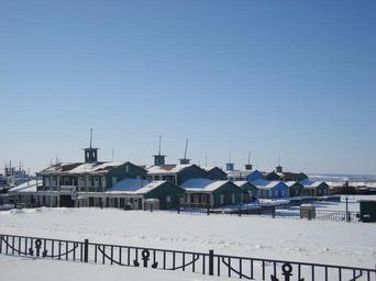 Keywords: Kazan port debarkader winter.JPG Деба каде ы зимуют в Казанском по ту own 2007-02-28 Untifler Port of Kazan Frozen Volga River Wooden architecture in Tatarstan Hulks Wharfboats in Russia