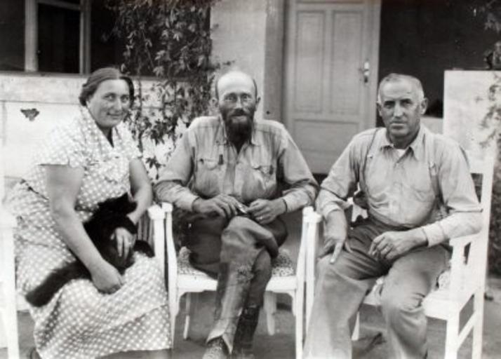| Keywords: Kazimierz Nowak with Wiśniewscy family.jpg Kazimierz Nowak in the centre and Wiśniewscy family Jadwiga on the left and Mieczysław on the rigth ; Windhoek German South-West Africa now Namibia The photo probably taken by Kazimierz Nowak 1897-1937 during his trip through Africa - a Polish traveller correspondent and photographer Probably the first man in the world who crossed Africa alone from the North to the South and from the South to the North from 1931 to 1936; on foot by bicycle and canoe Kazimierz Nowak w środku z rodziną Wiśniewskich Jadwiga po lewej i Mieczysław po prawej emigrantów z Polski osiadłych w Afryce przed ich domem; Windhoek Niemiecka Afryka Południowo-Zachodnia obecnie Namibia http //www kazimierznowak pl/2009/10/ circa about 1931-36 probably Kazimierz Nowak selftimer or an unknown author PD-Art Kazimierz Nowak People of Windhoek |