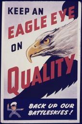 | Keywords: Keep an eagle eye on quality. Back up our battleskies^ - NARA - 535058.tif Scope and content General notes 535058 Local identifier 179-WP-1207 Office for Emergency Management War Production Board 01/1942 - 11/03/1945 Still Picture Records Section Special Media Archives Services Division NWCS-S National Archives at College Park 8601 Adelphi Road College Park MD 20740-6001 other date circa 1942 1943 Record group Record Group 179 Records of the War Production Board 1918 - 1947 Record group ARC 508 War Production Board compiled 1942 - 1943 Series ARC 533858 File unit File unit ARC Variant control numbers NAIL Control Number NWDNS-179-WP-1207 yes Other versions <gallery> File Keep_an_eagle_eye_on_quality _Back_up_our_battleskies _-_NARA_-_535058 tif tif File Keep_an_eagle_eye_on_quality _Back_up_our_battleskies _-_NARA_-_535058 jpg jpg </gallery> NARA-cooperation PD-USGov World War II posters from the United States NARA TIF images with categorized JPGs |