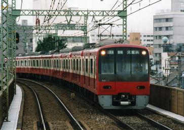 Keywords: Keikyu601Shimbamba.JPG Keikyu 600 series EMU set 601 in original livery at Shimbamba Station Own Hahifuheho 1995-07 cc-zero 1995 in rail transport in Japan Keikyu 600 series III