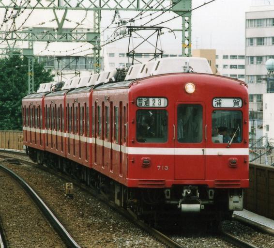 Keywords: Keikyu713shimbamba.JPG en Keikyu 713 at Shimbamba Station ja 京 713~ 新馬場駅にて撮影 Own Hahifuheho 1995-07 cc-zero 1995 in rail transport in Japan Keikyu 700 series Number 713 on vehicles