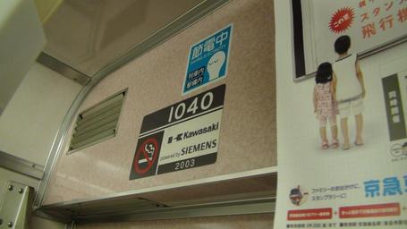 | Keywords: Keikyu 1040 plates.jpg en Keikyu 1040 manufacturers' plate ja 京 1040の製 銘 2011-08-14 own Hahifuheho 35 13 7 854 N 139 41 30 971 E alt 15 6_source exif_heading cc-zero Uploaded with UploadWizard Keikyu 1000 series II Rolling stock builder's plates of Japanese manufacturers Rolling stock builder's plates of German manufacturers |