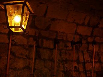 Keywords: keller vault halberds lamp light dark