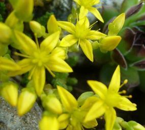 Keywords: Keltamaksaruoho Sedum acre.jpg Sedum acre Keltamaksaruohon kukkia own Own picture 2007-07-01 Roquai Sedum acre