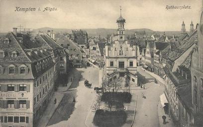 | Keywords: Kempten's Rathausplatz, circa 1910.jpg en Kempten's town hall with the towers of Kempten abbey visible on the right Kempten a Free Imperial City and Kempten abbey a Princely Abbey Fürststift enjoyed imperial immediacy and were fully independent of each other The territory of the Abbey was quite extensive compared to the small imperial abbeys of Southern Germany and included dozens of villages The abbot ranked as a prince of the Empire and sat on the Ecclesiastical Bench of the College of Ruling Princes at the Reichstag 2012-09-26 17 50 30 http //www ebay de/itm/alte-AK-Kempten-Rathausplatz-/310435387466 pt Ansichtskarte_Zubeh C3 B6r hash item484764184a Anonymous Postcard issued circa 1910 PD-old-100 Historical images of Kempten Allgäu |
