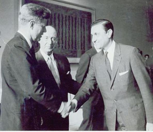 | Keywords: Kennedy shakes hands adnan al pachachi 31032010.jpg en JFK meets Iraqi Foreign Minister Adnan Pachachi Iraq's voice at the United Nations 1959-69 a personal record by Adnan Pachachi http //books google co uk/books/about/Iraq_s_voice_at_the_United_Nations_1959 html id Or2PAAAAMAAJ redir_esc y author 1960's PD-Iraq John F Kennedy shaking hands Relations of Iraq and the United States | ||||