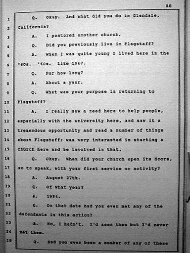 | Keywords: Kenneth Haywood Perjury P88.JPG en Page 88 from official transcript of Court proceedings June 6th 1995 Official Court Document Flagstaff AZ Coconinio County Superior Court CV95-00118 Northern Arizona Reporters 418 East Birch Avenue P O Box 22142 Flagstaff AZ 86001 1995-06-06 Kenneth Haywood |