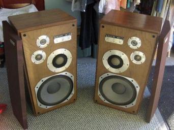 | Keywords: Kenwood Model Sevens.jpg en Kenwood Model Seven Speakers own CMC1972 2009-10-09 1975 Kenwood Model Seven Speakers One of the greatest Achievements in the realm of Audio sound reproduction costing nearly 3000/pr in 1975 They were billed as Creating an exact replica of original sound Billet Aluminum Driver frames 1 inch thick crosslaid lumber core baffleboard woofer 14 25 inches crossover points 400Hz/4000Hz/8000Hz Woofer has Japanese Tech signature on backside of cone with sequence number giving testament to its quality It is believed that fewer than 30 pairs of these were ever made Woofer weighs 25 lbs by itself while each cabinet fully loaded weighs an astounding 130 lbs Kenwood Corporation Hi-Fi loudspeakers |