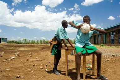 Keywords: kenya boys sky clouds trees soccer football ball dirt dusty nature outside country countryside