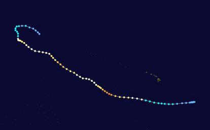 | Keywords: Keoni 1993 track.png Track map of Hurricane Keoni of the 1993 Pacific hurricane season The points show the location of the storm at 6-hour intervals The colour represents the storm's maximum sustained wind speeds as classified in the Saffir-Simpson Hurricane Scale see below and the shape of the data points represent the nature of the storm according to the legend below User Nilfanion/Tc/T Created using Wikipedia WikiProject Tropical cyclones/Tracks The background image is from NASA Tracking data is from the National Hurricane Center http //www webcitation org/5wzGtGEES 2006-06-07 Jdorje and Nilfanion Jdorje PD-USGov-NASA Hurricane/Typhoon Keoni 1993 Pacific hurricane tracks 1993 Pacific typhoon season track maps |