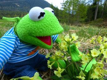 Keywords: kermit frog marvel cowslip primrose spring to watch sit nature doll