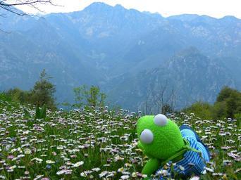 Keywords: kermit frog outlook mountains enjoy meadow daisy concerns relax rest fun doll flower meadow white flowers