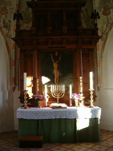Keywords: Kettinge Kirke 7.JPG Kettinge Kirke Own 2007-11-04 Erik Damskier Kettinge Kirke Altars in Denmark Lutheran altars Post-Reformation reredos