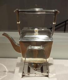 | Keywords: Kettle, stand, and burner, designed by Dirk van Erp (1860-1933), made by William Henry van Erp, c. 1930, silver with ivory or bone decoration - De Young Museum - DSC00766.JPG en Exhibit in the De Young Museum San Francisco California USA This artwork is in the public domain because the artist died more than 70 years ago Photography was permitted in the museum without restriction 2013-11-05 15 56 58 own Daderot other versions cc-zero American metalwork in the De Young Museum Uploaded with UploadWizard Dirk van Erp |