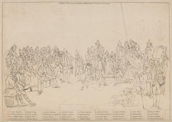 | Keywords: Key to Life School at the Royal Academy - Google Art Project.jpg Unknown unknown 2335102 artist /collection/yale-center-for-british-art/artwork/key-to-life-school-at-the-royal-academy-unknown-artist/2420516/ Unknown artist Artist /collection/yale-center-for-british-art/ Yale Center for British Art 2305845 http //britishart yale edu/ 2/23/2012 10 25 39 PM /collection/yale-center-for-british-art/artwork/key-to-life-school-at-the-royal-academy-unknown-artist/2420516/ 1794 1794 brushes Sandby Paul bap 1731 d 1809 painter and engraver Sandby Thomas bap 1723 d 1798 architect and draughtsman Kauffman Angelica 1741 “1807 history and portrait painter Cipriani Giovanni Battista 1727 “1785 decorative painter and draughtsman Bartolozzi Francesco 1728 “1815 engraver Zoffany Johan Joseph 1733 “1810 portrait painter West Benjamin 1738 “1820 history painter Nollekens Joseph 1737 “1823 sculptor Moser George Michael 1706 “1783 Chambers Sir William 1722 “1796 architect Hayman Francis 1707/8 “1776 painter engraver and book illustrator Reynolds Sir Joshua 1723 “1792 portrait and history painter and art theorist Newton Francis Milner 1720 “1794 portrait painter Catton Charles the younger 1756 “1819 landscape painter and book illustrator Wilton Joseph 1722 “1803 sculptor Penny Edward 1714 “1791 portrait historical and genre painter Wale Samuel 1721 “1786 painter and book illustrator Hunter William 1718 “1783 physician anatomist and man-midwife Barret George 1732 “1784 landscape painter Burch Edward bap 1730 d 1814 gem-engraver Carlini Agostino c 1718 “1790 sculptor Chamberlin Mason bap 1722 d 1787 portrait painter Cosway Richard bap 1742 d 1821 artist and collector Gwynn John bap 1713 d 1786 architect Hoare William 1707/8 “1792 portrait painter Hone Nathaniel 1718 “1784 painter Meyer Jeremiah 1735 “1789 miniature painter Moser married name Lloyd Mary 1744 “1819 flower painter Richards John Inigo 1730/31 “1810 landscape and scene-painter Serres Dominic 1722 “1793 marine painter Toms Peter bap 1726 d 1777 painter and herald Tyler William d 1801 sculptor and architect Wilson Richard 1712/13 “1782 landscape painter Yeo Richard d 1779 coin- and medal-engraver Zuccarelli Giacomo Francesco bap 1702 d 1788 landscape painter and draughtsman school men academy rope lamps chandelier palette canes hourglass busts nudes painting visual work paintings genre subject historical subject urn drawing sculptures Line engraving on medium slightly textured cream laid paper 251 2420516 False 1794 3/24/2012 7 16 21 PM YCBA/lido-TMS-53654 http //collections britishart yale edu/vufind/Record/1669635 Yale Center for British Art Paul Mellon Collection print 1790 1800 Not on View Not on View w352 x h251 cm 1794 False 1 4027397260274 Item key-to-life-school-at-the-royal-academy-unknown-artist Key to Life School at the Royal Academy k 352 Inscribed in graphite verso lower right 38 Inscription _Signed_and_Dated Not signed not dated Not on View Line engraving on medium slightly textured cream laid paper brushes Sandby Paul bap 1731 d 1809 painter and engraver Sandby Thomas bap 1723 d 1798 architect and draughtsman Kauffman Angelica 1741 “1807 history and portrait painter Cipriani Giovanni Battista 1727 “1785 decorative painter and draughtsman Bartolozzi Francesco 1728 “1815 engraver Zoffany Johan Joseph 1733 “1810 portrait painter West Benjamin 1738 “1820 history painter Nollekens Joseph 1737 “1823 sculptor Moser George Michael 1706 “1783 Chambers Sir William 1722 “1796 architect Hayman Francis 1707/8 “1776 painter engraver and book illustrator Reynolds Sir Joshua 1723 “1792 portrait and history painter and art theorist Newton Francis Milner 1720 “1794 portrait painter Catton Charles the younger 1756 “1819 landscape painter and book illustrator Wilton Joseph 1722 “1803 sculptor Penny Edward 1714 “1791 portrait historical and genre painter Wale Samuel 1721 “1786 painter and book illustrator Hunter William 1718 “1783 physician anatomist and man-midwife Barret George 1732 “1784 landscape painter Burch Edward bap 1730 d 1814 gem-engraver Carlini Agostino c 1718 “1790 sculptor Chamberlin Mason bap 1722 d 1787 portrait painter Cosway Richard bap 1742 d 1821 artist and collector Gwynn John bap 1713 d 1786 architect Hoare William 1707/8 “1792 portrait painter Hone Nathaniel 1718 “1784 painter Meyer Jeremiah 1735 “1789 miniature painter Moser married name Lloyd Mary 1744 “1819 flower painter Richards John Inigo 1730/31 “1810 landscape and scene-painter Serres Dominic 1722 “1793 marine painter Toms Peter bap 1726 d 1777 painter and herald Tyler William d 1801 sculptor and architect Wilson Richard 1712/13 “1782 landscape painter Yeo Richard d 1779 coin- and medal-engraver Zuccarelli Giacomo Francesco bap 1702 d 1788 landscape painter and draughtsman school men academy rope lamps chandelier palette canes hourglass busts nudes painting visual work paintings genre subject historical subject urn drawing sculptures special url_id -AGNbr02XUuCFw PD-old-100 Google Art Project works by unknown artist Royal Academicians Drawings of people |
