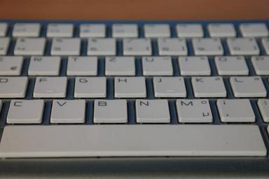 Keywords: keyboard computer keyboard input input device tap computer peripheral hardware letters keys space bar white silver
