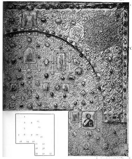 Keywords: Khakhuli icon (2).JPG Khakhuli icon Portion of the central panel thumb Explanation of the numbered images from the source in Russian Иван Иванович Толстой икодим Павлович Кондаков Русские д евности в памятниках искусства Выпуск 4 Х истианские д евности К ыма Кавказа и Киева С -Пете бу г Типог афия инисте ства путей сообщения А Бенке 1891 Published 1891 Author PD-RusEmpire Khakhuli triptych |