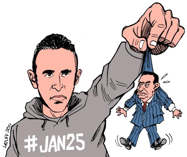 | Keywords: Khaled Mohamed Saeed holding up a tiny, flailing, stone-faced Hosni Mubarak.png Khaled Mohamed Saeed holding up a tiny flailing stone-faced Hosni Mubarak by Carlos Latuff http //twitpic com/3swvnr Carlos Latuff 2011-01-24 2009011710020348 http //www flickr com/photos/adisafri/5415231315/ Carlos Latuff Cartoons by Carlos Latuff about the Egyptian Revolution of 2011 Caricatures of Hosni Mubarak Khaled Mohamed Saeed | ||||