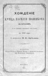 Keywords: Khojdenie Poznyakov 1884.jpg ru Титульный лист «Хожения» Василия Познякова издания 1884 года http //vk com/wall-35220730_4963 Забелин Иван Его ович 1820 - 1909 1884 PD-old-100 Khojdenie