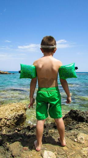 Keywords: kid boy looking sea beach child happy fun summer vacations