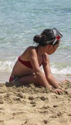 Keywords: kid girl playing child summer beach sand vacation summer beach