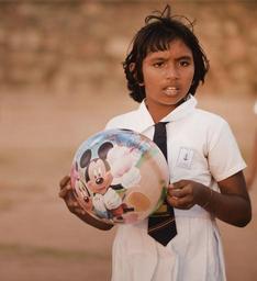 Keywords: kid girl teen play ball childhood young portrait white school uniform