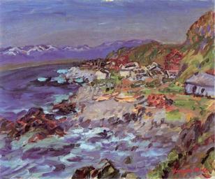 | Keywords: KidaKinjiro-1950-Old Ban'ya.png Artwork 古番屋 Old Ban'ya 田金次郎 Kida Kinjiro 1950年頃 ca 1950 Oil on canvas cm 50 0 60 8 法人蔵 岩内町 1999年現 Owned by a private company in Iwanai as of 1999 田金次郎画集 田金次郎美術館 1999年 PD-Japan 1962 1954年制 の同名油彩画が存 する In Japanese ban'ya implies simple lodging house s or work place s that fishermen use There is an another painting with the same title produced in 1954 Other versions Paintings before 1954 by Kida Kinjiro PD-Japan | ||||