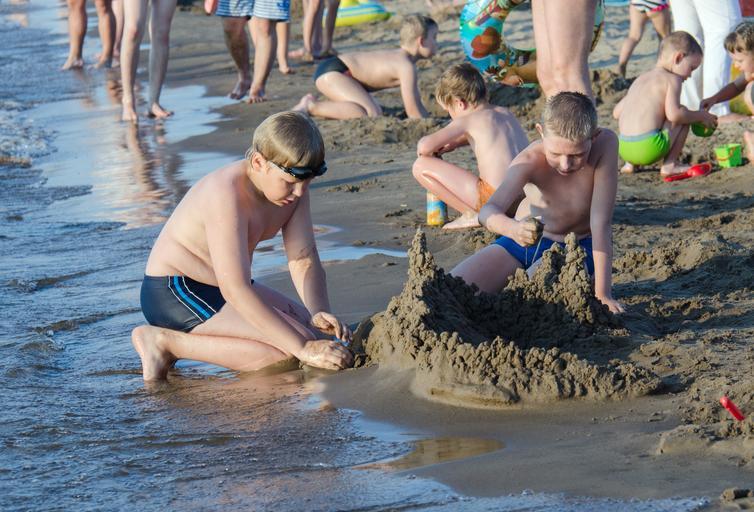 Keywords: kids beach game sand sandy beach river summer wave friends sand castle fun