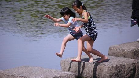 Keywords: kids kyoto kamogawa person jump orchid move japan girls play