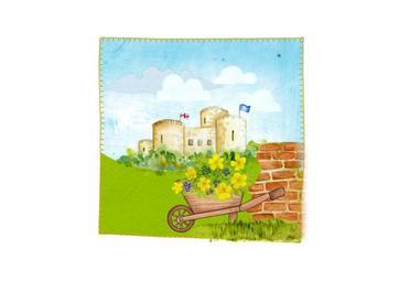Keywords: kids watercolor scene country wheelbarrow flowers castle kids background happy watercolor background drawing design decoration fun artistic poster kids drawing holiday