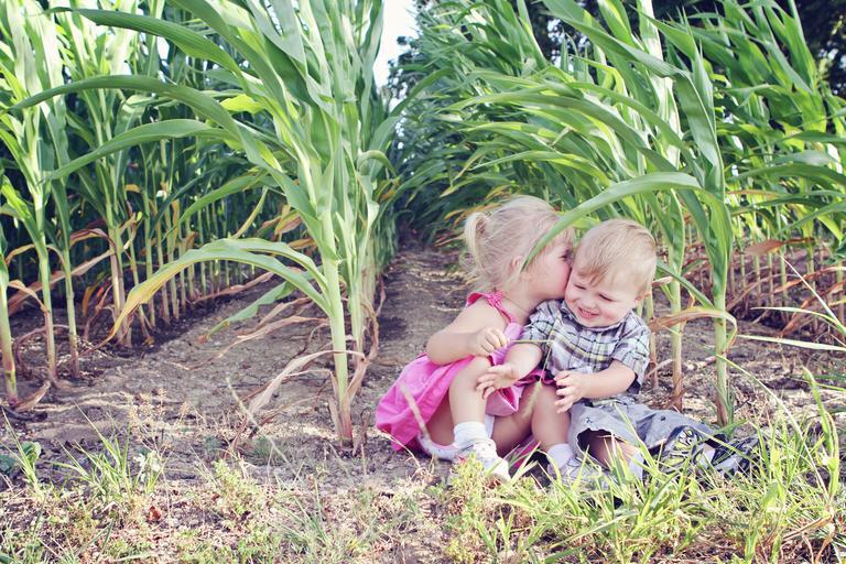 Keywords: kids youth friendship kiss child childhood people happiness person children kid cute girl boy cheerful white summer play smile joy cornfield outdoors