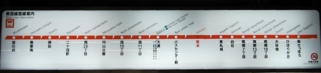 | Keywords: Kikusui Sta Transit map.jpg  Information board for Sapporo City Subway Tozai Line stations at Kikusui Station  幌市営 下鉄 西線路線図(菊水駅にて) 2012-04-27 own Ninosan cc-zero Information boards at train stations in Japan Sapporo Subway maps Kikusui Station Uploaded with UploadWizard |