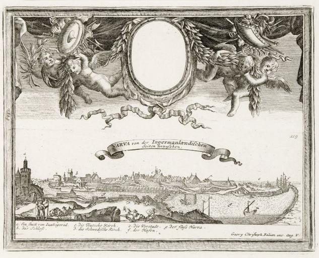 | Keywords: Kilian narvaingerimaapoolt.jpg Artwork Creator Georg Christophe Kilian c 18 saj kesk etching copper engraving paper cm 19 7 31 6 Museum Kumu accession number EKM G 15 object history credit line Jacob Stael von Holsteini ja Chr Rothgiesseri järgi A Oleariuse 1656 a teosest http //digikogu ekm ee/vana/oid-2810 Art Museum of Estonia's Digital Archive PD-old-100 18th-century etchings Georg Christoph Kilian Graphics in KUMU Narva in the 17th century | ||||