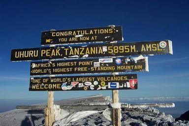 Keywords: Kilimanjaro Uhuru Peak Sign.jpg Sign at Uhuru Peak Mt Kilimanjaro Tanzania Africa 2001-01-01 own assumed Arne d Uhuru peak Kilimanjaro Region Signs at Kilimanjaro