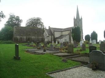 Keywords: Kiltegan church and hume mausoleum.jpg en Kiltegan Church of Ireland parish church with the large mausoleum of the Hume family Own Davidparsons 2008-08 Churches and monasteries in County Wicklow Kiltegan
