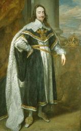| Keywords: King Charles I by Anthony van Dyck cropped.jpg Artwork Creator Anthony van Dyck Portrait of male crop of File Charles I of England by Anthony van Dyck jpg 1636 Technique oil canvas cm 248 153 6 Institution Royal Collection Queens' Ball Room accession number RCIN 404398 https //www royalcollection org uk/collection/search /23/collection/404398/charles-i-1600-1649 Royal Collection other versions <gallery>King Charles I after original by van Dyck jpg copy</gallery> PD-old-100-1923 DEFAULTSORT Dyck King Charles I in his robes of state Royal Collection Paintings of Charles I in Robes of State by Anthony van Dyck Portrait paintings in the Royal Collection of the United Kingdom by Anthony van Dyck Baroque paintings in the Royal Collection of the United Kingdom in Windsor Castle Fur fashion in 1636 Male white shoes in portrait paintings 17th-century oil portraits of standing men at full length in ceremonial robes 17th-century portrait paintings with columns Ž 1636 oil on canvas paintings in the United Kingdom 1636 portrait paintings |