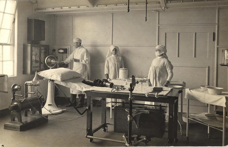 | Keywords: hospital king george military hospital kinggeorgemilitaryhospital postcards national library of medicine nationallibraryofmedicine indoor room monochrome Contributor(s): Zwerdling, Michael, former owner Publication: [England] : [publisher not identified], [1915] Language(s): English Format: Still image Subject(s): Hospitals, Military Equipment and Supplies X-Rays Nurses King George Military Hospital. Genre(s): Postcards Abstract: Black and white photograph of 2 nurses and a doctor in the electrical treatment and x-ray room in King George Military Hospital, London, England. The room is filled with medical equipment. Extent: 1 postcard : 9 x 14 cm Provenance: Purchase ; Michael Zwerdling ; 2004 ; 04-22. Technique: black and white NLM Unique ID: 101609958 NLM Image ID: D05810 Permanent Link: resource.nlm.nih.gov/101609958 Contributor(s): Zwerdling, Michael, former owner Publication: [England] : [publisher not identified], [1915] Language(s): English Format: Still image Subject(s): Hospitals, Military Equipment and Supplies X-Rays Nurses King George Military Hospital. Genre(s): Postcards Abstract: Black and white photograph of 2 nurses and a doctor in the electrical treatment and x-ray room in King George Military Hospital, London, England. The room is filled with medical equipment. Extent: 1 postcard : 9 x 14 cm Provenance: Purchase ; Michael Zwerdling ; 2004 ; 04-22. Technique: black and white NLM Unique ID: 101609958 NLM Image ID: D05810 Permanent Link: resource.nlm.nih.gov/101609958 |