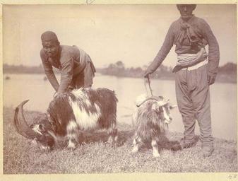 | Keywords: King George V Hunting in Nepal (22).jpg en Goats with handlers on the banks of the Rapti Possibly part of the gift of a collection of animals indigenous to Nepal which the Maharaja had presented to King George V This collection consisted of over seventy varieties ranging from a young elephant and a rhinoceros calf to the wild ass of the Tibetan border also the rare shou which subsequently with many others of the animals which survived the journey to England could be found in the gardens of the Zoological Society in London - Historical record of the Imperial visit to India 1911 p 231 1911-12 http //www oldindianphotos in/2008/12/king-george-vs-hunting-in-nepal-in_24 html author Custom license marker 2014 09 09 PD-old-100-1923 George V of the United Kingdom Uploaded with UploadWizard |