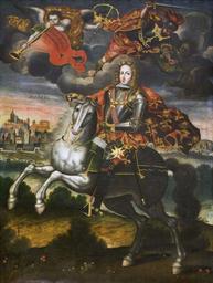 | Keywords: King Louis I of Spain on Horseback, early 18th century. Peruvian, Philadelphia Museum of Art.jpg Retrato del rey Luis I de España 1707-1724 en King Louis I of Spain on Horseback early otherdate century 18 Oil on canvas cm 202 155 Institution Philadelphia Museum of Art Philadelphia Museum of Art PD-old-100 other versions Portrait paintings of Louis I of Spain 18th-century unidentified painters Latin American paintings in the Philadelphia Museum of Art 18th-century oil equestrian portraits of men 18th-century portraits wearing armour 18th-century portrait paintings in the United States Collar of the Order of the Golden Fleece in portrait paintings Equestrian portraits of kings Paintings from Peru Portraits with putti |