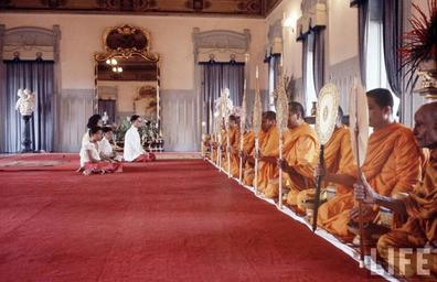 | Keywords: King & Queen Of Thailand (38).jpg en Thailand's King Bhumibol Adulyadej R and Queen Sirikit 2L giving alms in a ritual called Sai Bat w their children Vajiralongkorn 2R and Ubolratana L on the morning of Ubolratana's birthday Location Bangkok Thailand Date taken 1960 Photographer John Dominis http //images google com/hosted/life/70e2fee7bc4f0fc6 html other versions https //www flickr com/photos/13476480 N07/30219523501/in/photolist-5Ydqhn-5YhEmL-5YhEEb-Ne4rZD-Mgp3ww-MZLJEb-MZLF9o-CuU33y-5YhDM9-5YdpGr-5YhDcS-5YdoN4-5YhCSy-5Ydoxr-N3oXvg Flickr PD-Thailand Bhumibol Adulyadej in 1960 Vajiralongkorn in 1960 Ubolratana Rajakanya Sirikit |