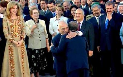 | Keywords: KingHussein&HM.jpg en King Hussein of Jordan Hugging Jordanian poet Haider Mahmoud at the 1998 Jordan Independence Day Celebration ar الملك الحسين بن طلال يحتضن الشاعر الأردني حيدر محمود في احتفال عيد الإستقلال عام 1998 own Samerfaraj01 1998-05-25 cc-zero Haider Mahmoud Queen Noor of Jordan Hussein I of Jordan |