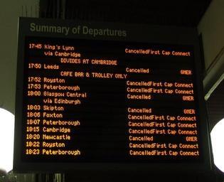 | Keywords: Kings Cross 2007-01-18 all cancelled 1.JPG Summary of Departures at King's Cross railway station on 18th January 2007 All the trains are listed as cancelled The reason for the cancellations is a storm called Kyrill Own 2007-01-18 Edward Betts Signs in London King's Cross railway station Kyrill storm Rail transport cancellations 2007 at London King's Cross railway station 2007-01-18 17 40 2007 in rail transport in the United Kingdom 2007-01-18 17 40 January 2007 in London 2007-01-18 17 40 18 January 2007-01-18 17 40 Taken with Fujifilm FinePix F11 LED displays at train stations |