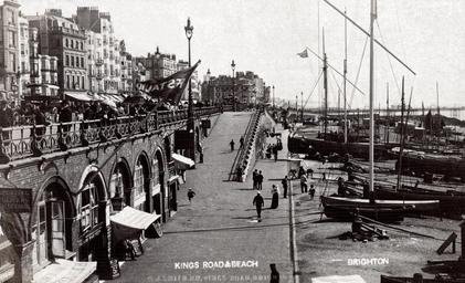 | Keywords: Kings Road and beach Brighton East Sussex England 1895.jpg Brighton East Sussex England Card postally franked 1895 and taken by E T Tuffin photographer of 50 King's Road the building at the extreme left of the picture 2016-01-11 19 39 15 Vintage postcard 1895 or before E T Tuffin 50 King's Road Brighton other versions PD-old-70-1923 Brighton East Sussex History of Brighton Postcards of Sussex Boats on beaches Boats in East Sussex Beaches of Brighton and Hove Promenades in England ImageNote 1 2 14 65 328 1579 961 2 E T Tuffin's photographic studios at 50 King's Road; in 2015 a fish'n'chip shop with accommodation flats above ImageNoteEnd 1 ImageNote 2 713 264 158 99 1579 961 2 Queens Hotel 2015 ImageNoteEnd 2 ImageNote 3 1048 357 521 36 1579 961 2 Palace Pier ImageNoteEnd 3 |