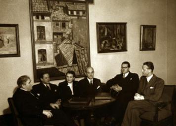 | Keywords: Kinostyret1951 (300x216).jpg no Kinostyret i Oslo i jubileumsåret 1951 Fra venstre Kristoffer Aamot Rolf Stranger Gudrun Sunde Rolf Hofmo Kåre Haugen og fiannsrådmann Egil Storstein Per Heiberg og Albert Mathiesen var ikke tilstede da bildet ble tatt Fotograf ukjent Original i Oslo byarkiv own Oslo City Archives 1951 in Norway History of Oslo Rolf Stranger Media from the collection of Oslo City Archives | ||||