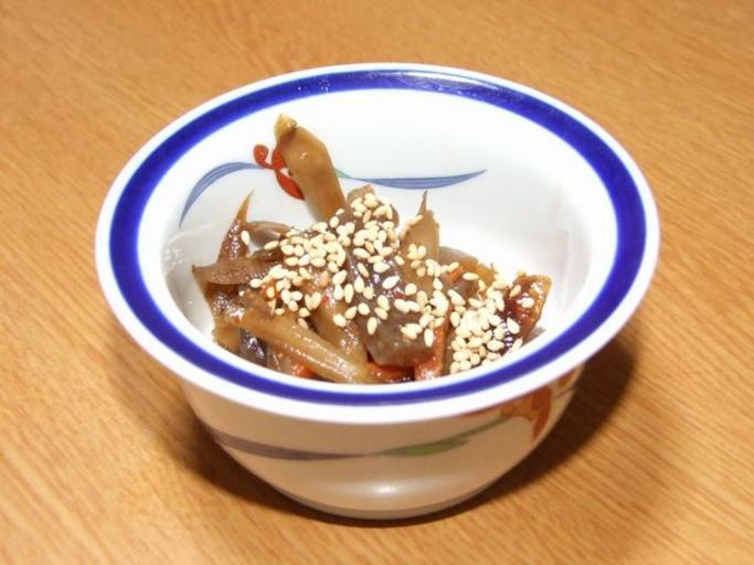 Keywords: Kinpiragobou001.jpg Kinpira-Gobou see ja 金平 Photo taken by own 2008-01-05 Babi Hijau See below Vegetable-based food of Japan Arctium lappa as food Sesame