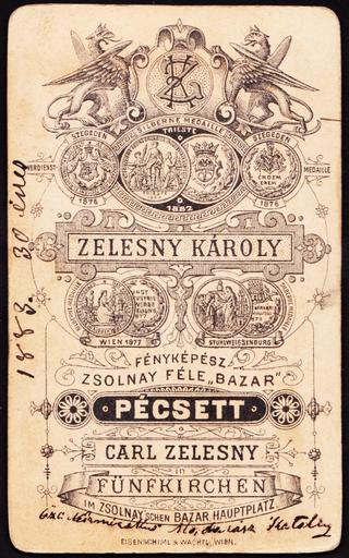 | Keywords: Király utca 1., Zsolnay féle - Fortepan 81426.jpg  Check categories 2016 August 28 hu Király utca 1 Zsolnay féle Bazár Zelesny Károly fényképész Location Hungary Tags verso photographer studio Title Király utca 1 Zsolnay féle \ http //www fortepan hu/_photo/download/fortepan_81426 jpg 1900 Fortepan 81426 http //www fortepan hu/_photo/download/fortepan_81426 jpg http //www fortepan hu/ lang en img 81426 Unknown The release at fortepan hu is CC-BY-SA-3 0 As the photographer is unknown or pseudonymous and the photograph is Age 1900 01 01 years old it is considered public domain both in the country of publication Hungary and the USA where Wikimedia Commons is hosted See Fortepan HU for more information on related uploads PD-anon-70-EU PD-1923 PD-1923 DEFAULTSORT Fortepan 081426 1900 photographs Images uploaded by Fæ |
