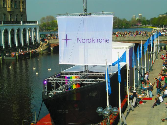 | Keywords: Kirchentag 2013 Nordkirchenschiff auf Kleiner Alster.jpg de Nordkirchenschiff auf der Kleinen Alster während des Deutschen Evangelischen Kirchentages 2013 in Hamburg own Gerhard kemme 2013-05-04 Deutscher Evangelischer Kirchentag 2013 Kleine Alster Evangelisch-Lutherische Kirche in Norddeutschland Cc-zero |