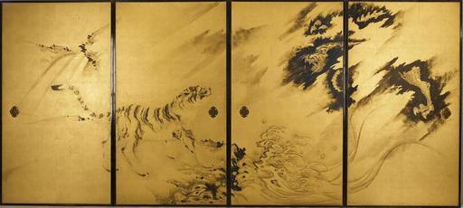 | Keywords: Kishi Ganku - Fusuma - Tigers and Dragon - Walters 35301.jpg These fusuma Japanese sliding door panels were designed to cover two walls of a room forming an L shape They would have surrounded three tatami mats on two sides Each set of four panels forms an open-ended but stable composition with a tiger and birds on the left and a tiger and dragon on the right The left set of four is signed and sealed in the left-most panel These works are by Kishi Ganku the founder of the Kishi school of late Edo period 18th-century Japanese painting Originally named Saeki Masaaki the artists was born in the city of Kanazawa on Japan's north coast in either 1749 or 1756 records of his birth are in conflict He moved to Kyoto in 1773 and became a retainer to Prince Arisugawa In 1804 he entered the imperial court as an official and was appointed Echizen-no-Suke honorary governor of Echizen Province He again lived in Kanazawa from 1809 and finally settled in Iwakura outside Kyoto in 1813 In the same year he officially adopted the artist's name Kishi Ganku Initially Ganku studied Kano-style painting but early in his studies he shifted to explore the Nanpin style named for the Chinese painter Shen Nanpin active early 18th century Following his study of Nanpin he explored Japanese naturalism under Maruyama Okyo and nanga-inspired naturalism under Matsumura Goshun of the Shijo school in Kyoto Perhaps unsatisfied with any of these popular styles he founded his own school the Kishi school characterized by a rough and vigorous brush style but still reflective of the many influences his training had provided He is most well known as a painter of animals in particular tigers His works exhibit an almost Western-seeming solidity and are often filled with a sense of drama conveyed both by the subject matter and his muscular brushwork Even in his most individualized works visual links back to his training in the great painting traditions of the Edo period remain visible The Tigers and Dragon fusuma are representative of Ganku's mature style They were painted sometime after 1813 He uses the title of Echizen-no-suke in signing the left most panel and the seals below the name read Ganku and Funzen an alternate azana name he used as a painter The tigers are readily identifiable as Ganku's while the birds on branches reveal his Kano training The pair of birds in the left set of panels are nearly direct imitations of Kano Eitoku's birds in the Daisen-in fusuma in Kyoto The trees in Ganku's panels owe their form to his Shijo school training as they imitate the early 18th-century nanga style of Matsumura Goshun These fusuma serve as prime examples of the Kishi school style and owing to their near pristine condition they reveal the kind of commission that kept artists like Ganku active through the final years of the Edo period Works like this would serve as models for the following generations of Kishi painters including Gantai 1782-1865 Ganryo 1798-1852 Gankei 1811-1848 Ganrei 1816-1883 and Gansei 1827-1867 between 1813 1838 Edo ink gold leaf on paper lacquered wood cm 173 36 698 5 ; Panels A-D cm 172 72 76 2 ; Panels E-H cm 173 36 98 43 accession number 35 301 77479 These fusuma were brought to Kyoto from western Japan by a traveling dealer they were likely purchased from the family who originally commissioned them James Freeman Kyoto Japan between 1998 and 2000 by purchase Walters Art Museum 2008 by purchase Museum purchase 2008 Signature Echizen-no-suke Ganku place of origin Japan Walters Art Museum license 2D Japanese paintings in the Walters Art Museum Kishi Ganku Media contributed by the Walters Art Museum needs category review Paintings of dragon and tiger |